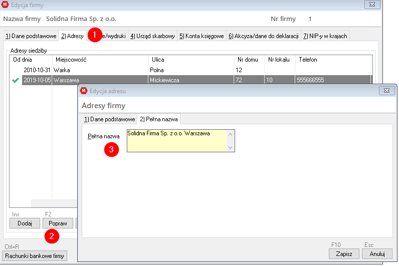 Gdzie możesz zarządzać adresami? Oczywiście w edycji firmy (System | Wybór firmy | Popraw | 2)Adresy).
